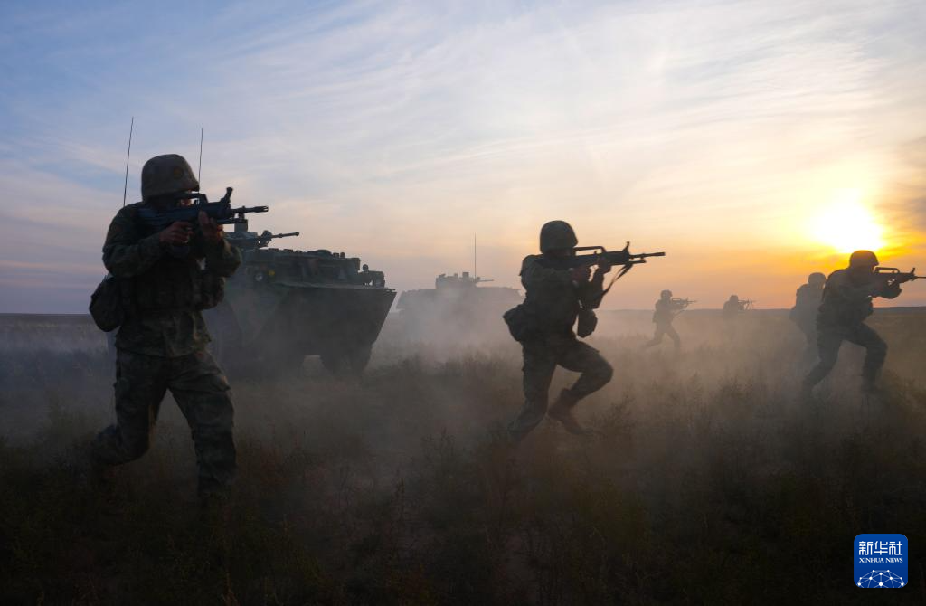 陸軍某旅“劉老莊連”在實(shí)戰(zhàn)化演練中,步戰(zhàn)車編隊(duì)行進(jìn)(2025年9月16日攝)。新華社記者 張永進(jìn) 攝